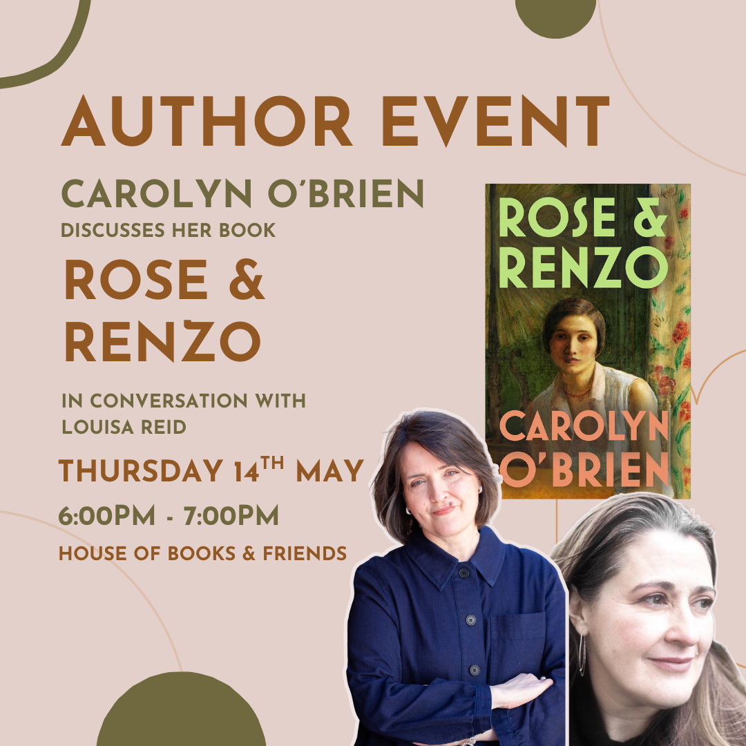 House of Books & Friends is thrilled to welcome Carolyn O’Brien on Thursday 14th of May from 6pm to discuss their new book, ‘Rose and Renzo‘. The evening will involve a discussion, a Q&A, and a chance to get your book signed by Carolyn. Carolyn will be in conversation with Louisa Reid, author of adult and YA fiction including ‘Handle with Care’.
